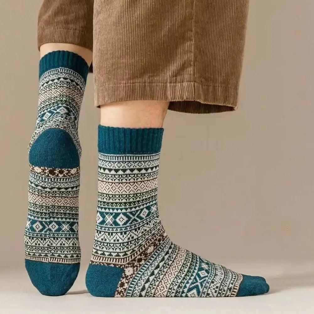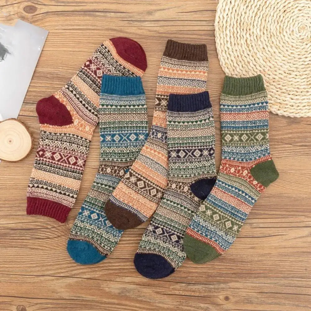 Designed in a retro ethnic style, these mid-high tube socks offer both warmth and a flattering leg-lengthening effect. They pair effortlessly with snow boots, casual shoes, or winter footwear, adding a fashionable touch to any outfit. Exquisite patterns and detailed designs make each pair unique, combining functionality with artistic style.