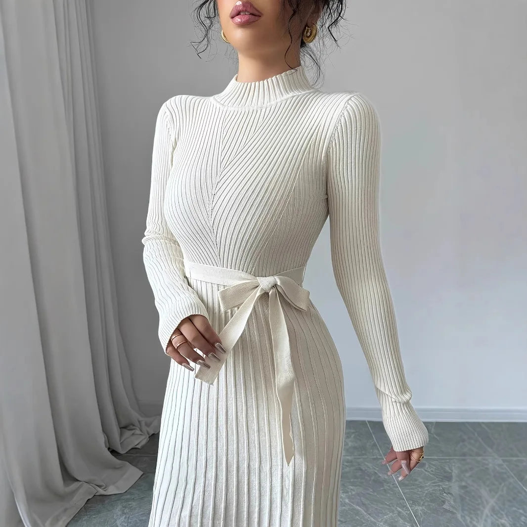 This dress is crafted from 100% top-notch material, featuring high-stretch polyester that offers both superior comfort and a flawless slim fit. The turn-down collar and mid-calf A-line silhouette create a refined "H-profile" that flatters every curve while remaining breathable enough for year-round wear.