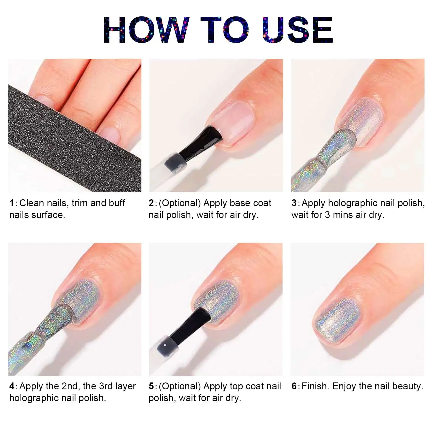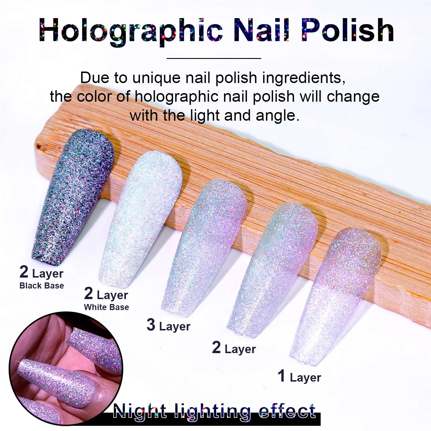 Holographic Shine: Reflective laser pigments give a mesmerizing rainbow effect.