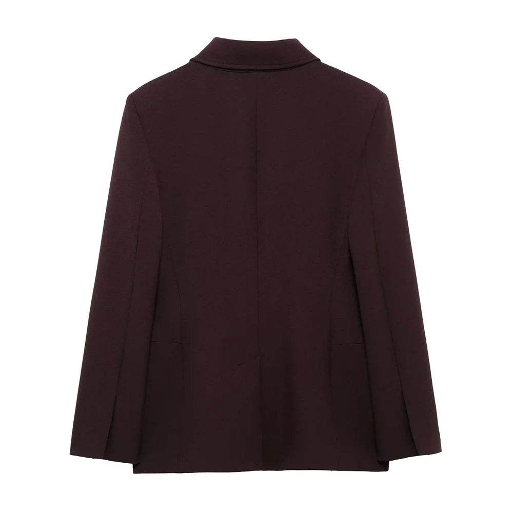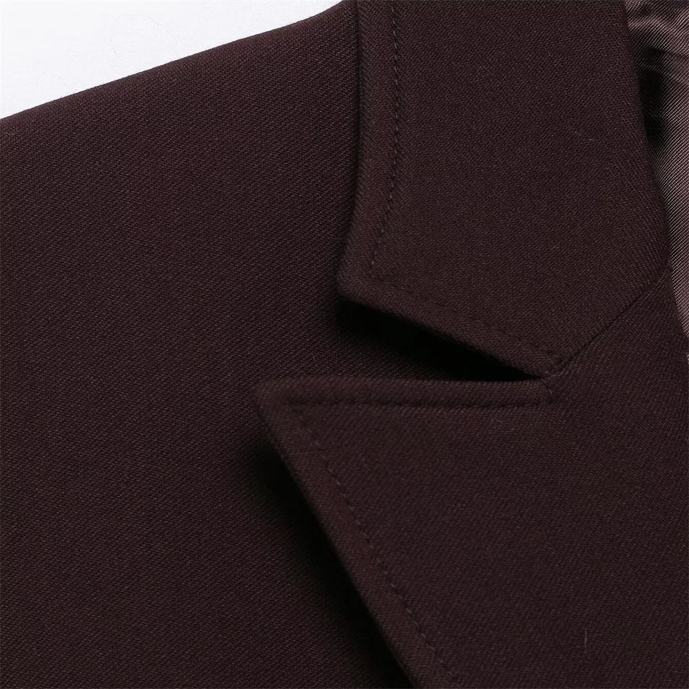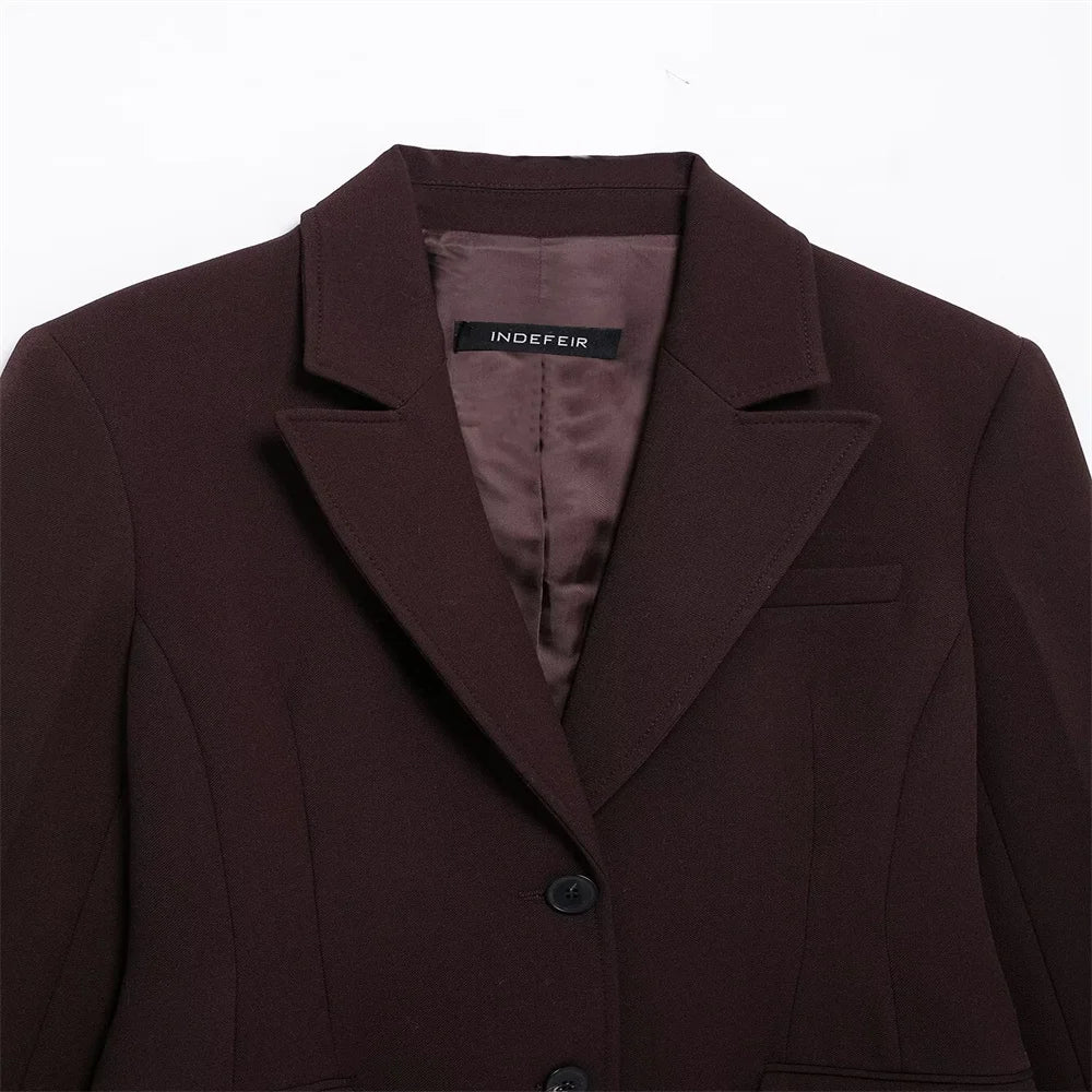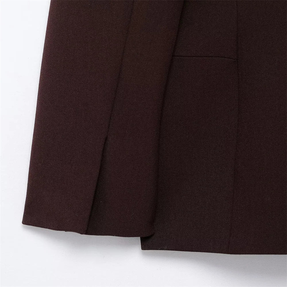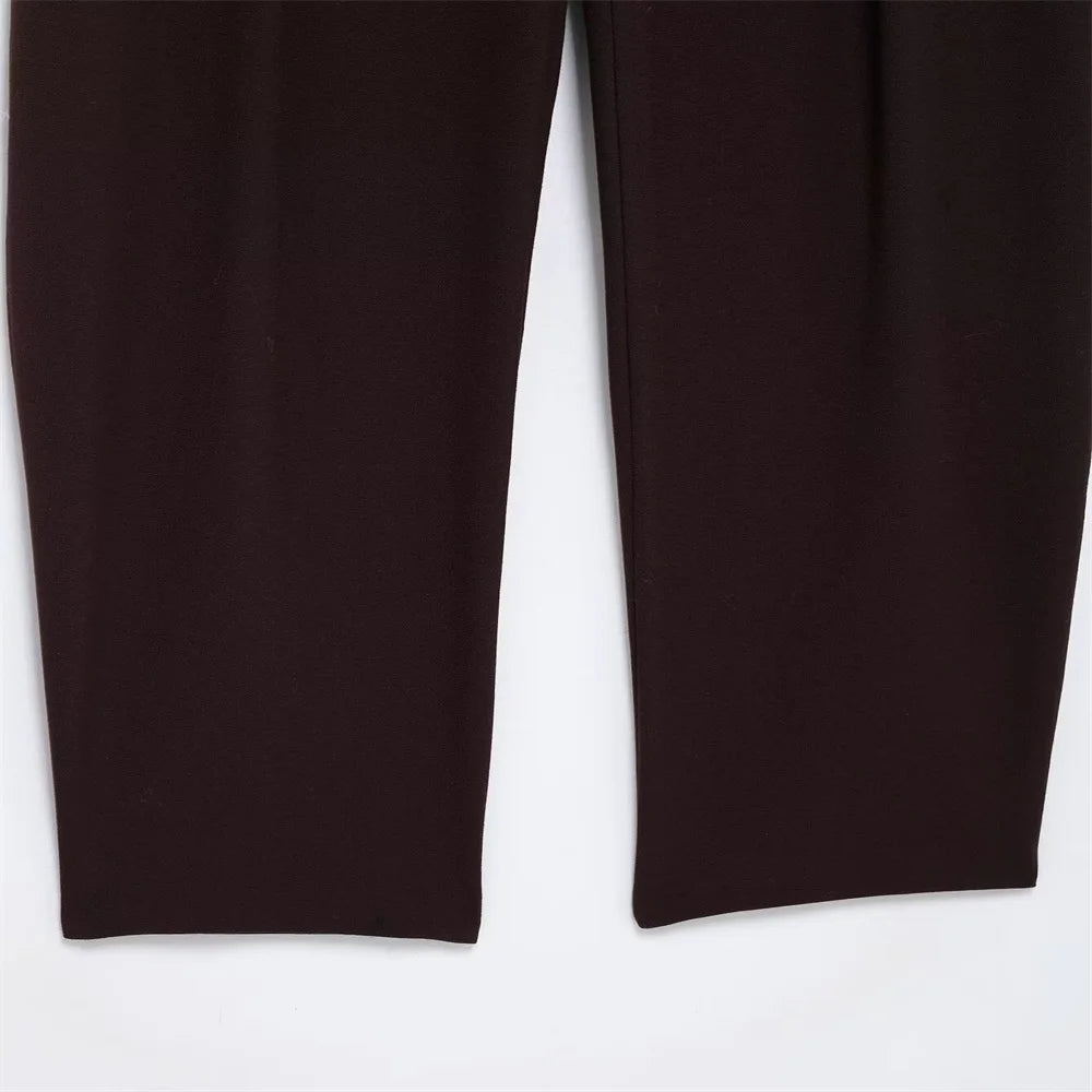 The single-breasted blazer features a classic notched collar and a loose, comfortable fit, while the matching pants offer a trending wide-leg cut with pleated front detailing. This combination creates a visually slimming effect that is both stylish and professional. Whether worn together for a powerful monochrome look or styled separately, this set is the ultimate versatile addition to your wardrobe.