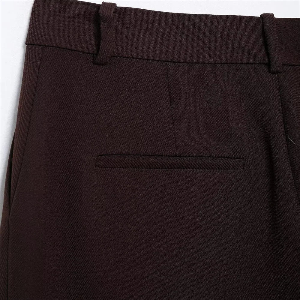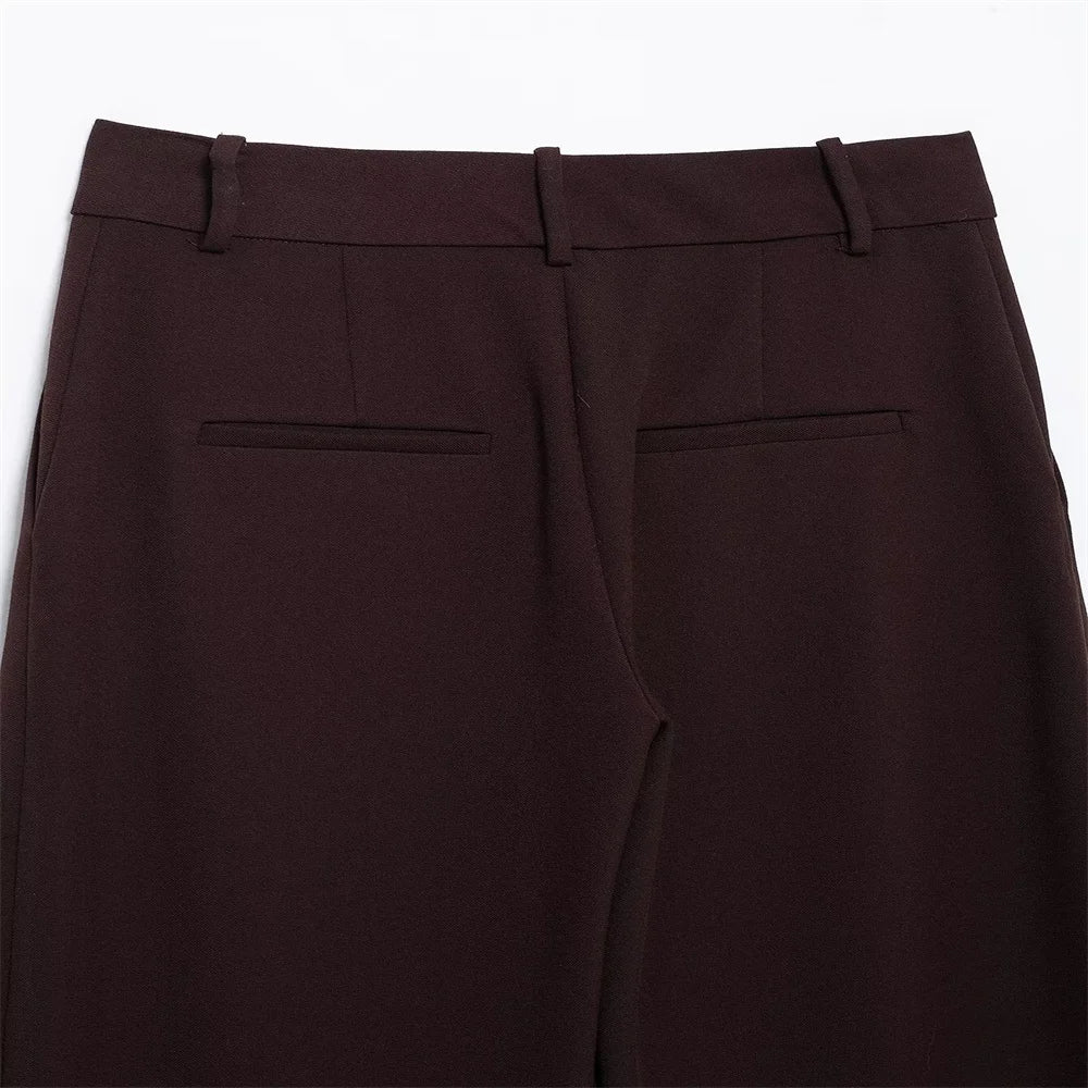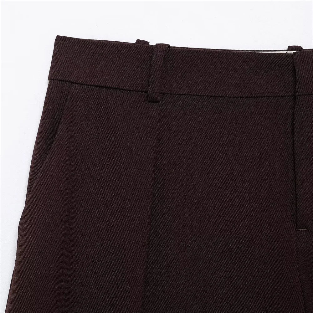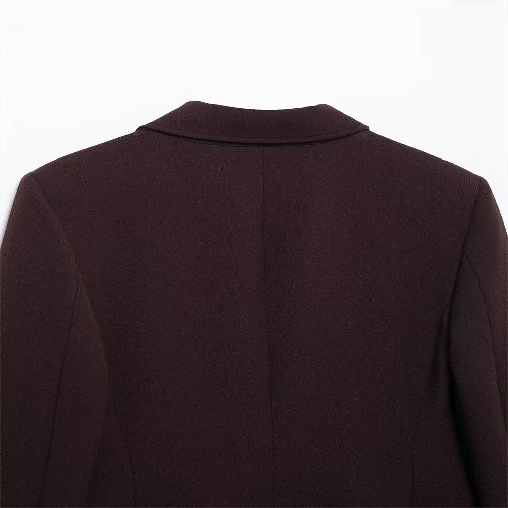 The single-breasted blazer features a classic notched collar and a loose, comfortable fit, while the matching pants offer a trending wide-leg cut with pleated front detailing. This combination creates a visually slimming effect that is both stylish and professional. Whether worn together for a powerful monochrome look or styled separately, this set is the ultimate versatile addition to your wardrobe.