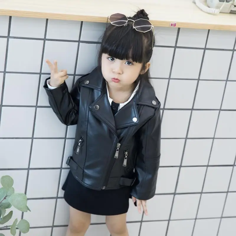 M&T Wear - Girls Boys PU Jackets Kids Baby Leather Jacket Spring Autumn Coat Children Clothes Overcoats 2-10T