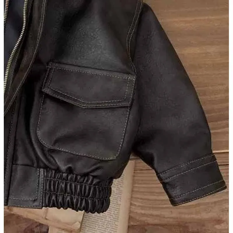 M&T Wear - Children's PU Leather Jacket Boys Fashion Coat Girls Classic Retro Outerwear Autumn Kids New Street Fashionable Casual Tops
