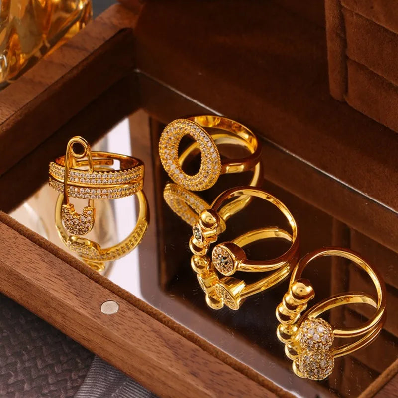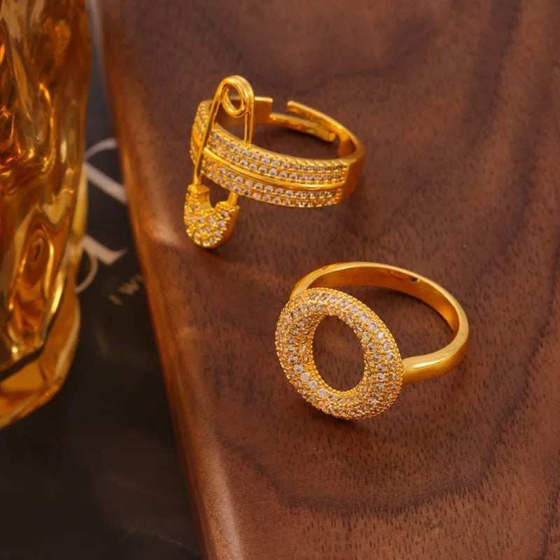 M&T Wear – Elegant Gold & Silver Zircon Cocktail Ring for Women