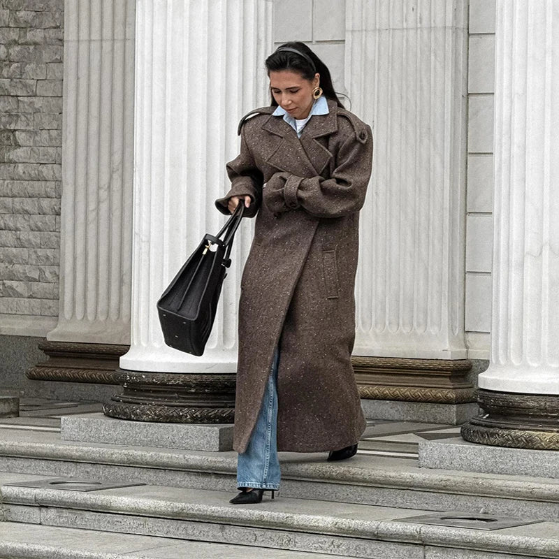 M&T Wear - Elegant Lace-Up Double-Breasted Long Wool Overcoat
