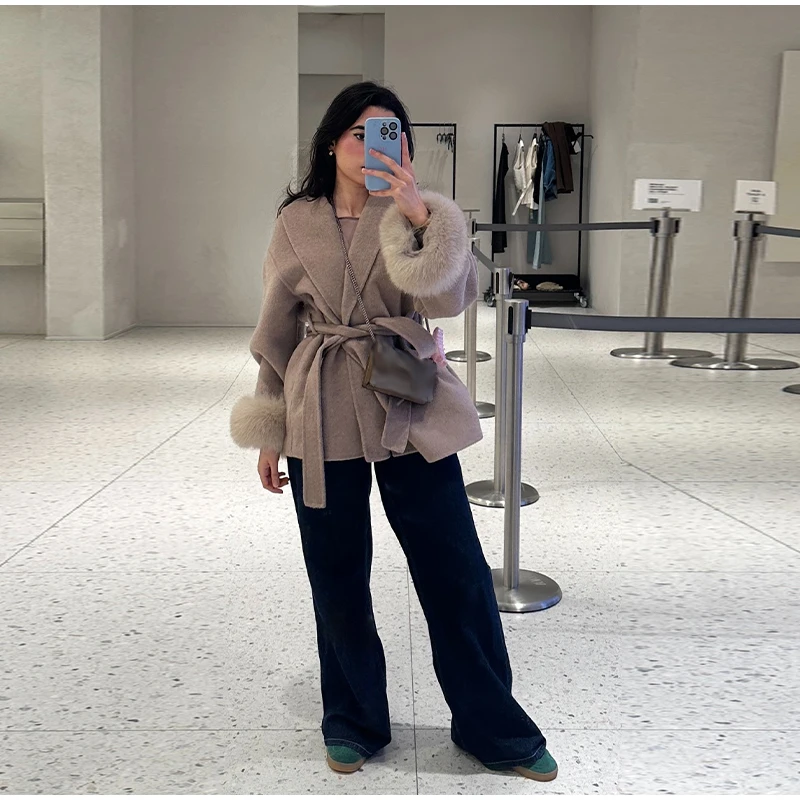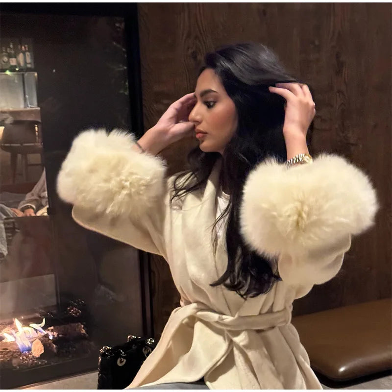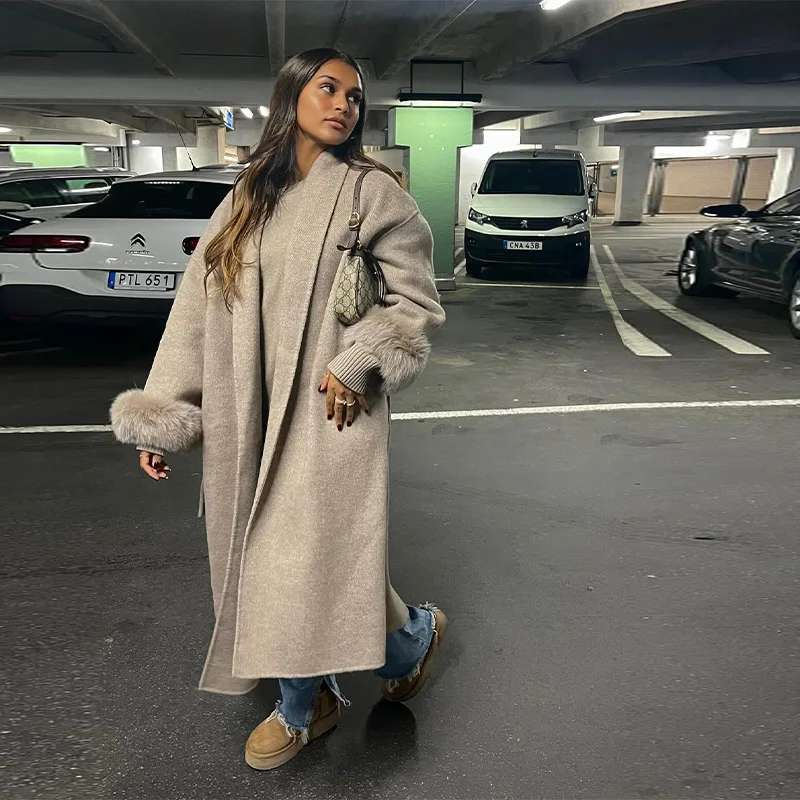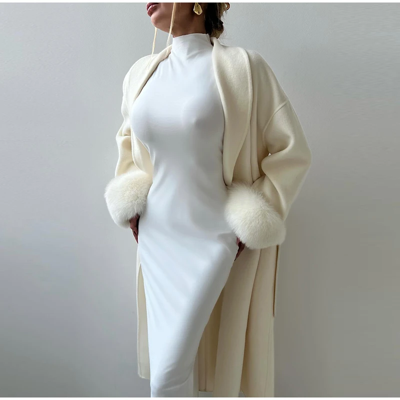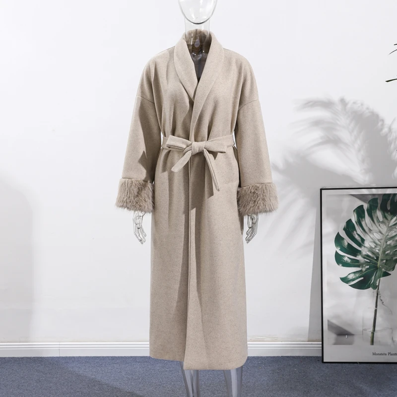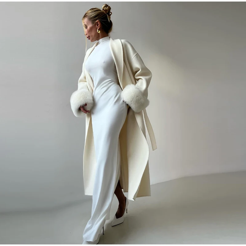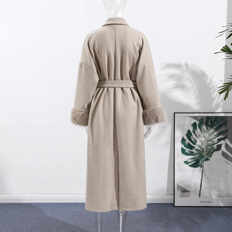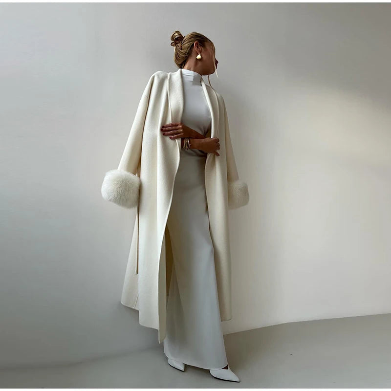 Elegant Solid Long Overcoat Women Turn-down Collar Lace Up Full Sleeve Classic Warm Coat 2025 New Lady Autumn Winter Casual Wear