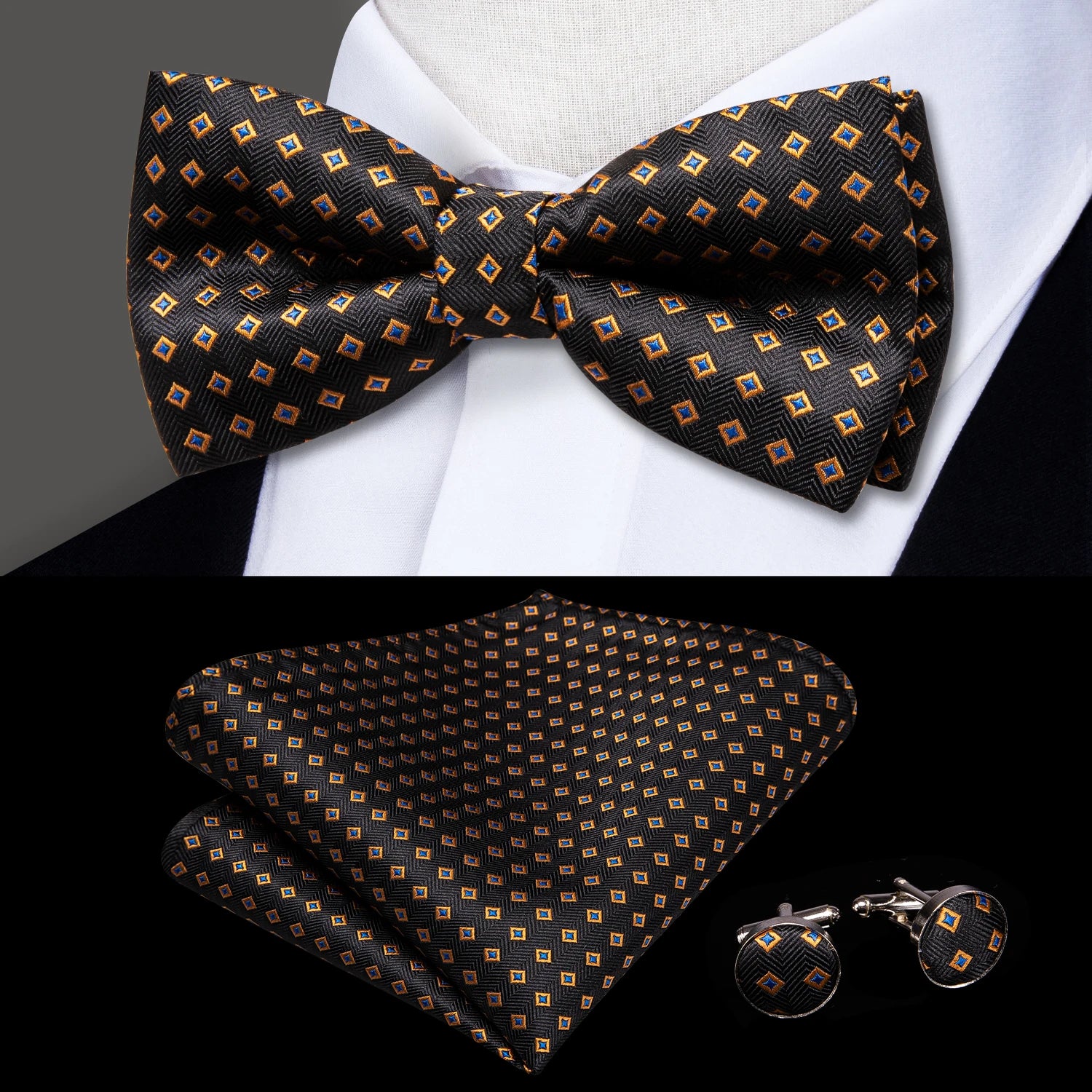 Hi-Tie 60 Color Classic Bow Ties for Men Silk Butterfly Pre-Tied Male Bowtie Pocket Square Cufflinks Set Jacquard Paisley Floral