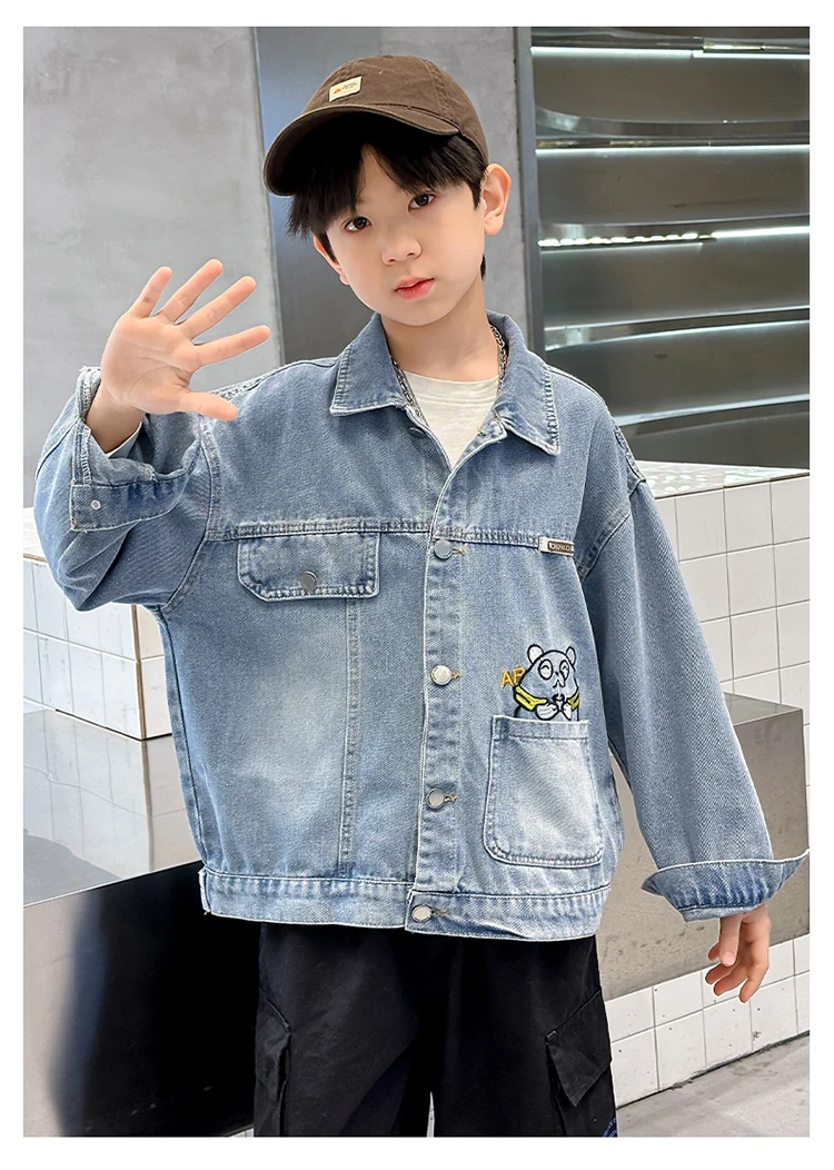 M&T Wear - Kids Denim Jacket Boys Jeans Coat Clothing Fashion Baby Boy Denim Jacket With Cartoon Embroidery Child Casual Streetwear Outfit