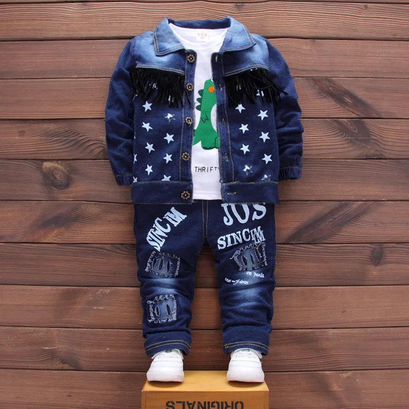 M&T Wear - Kids New Denim Jacket Boys Coat Toddler Sport Clothes Suit Clothing Set Cotton Jeans Coat T-shirt Pants Star Tracksuit Children