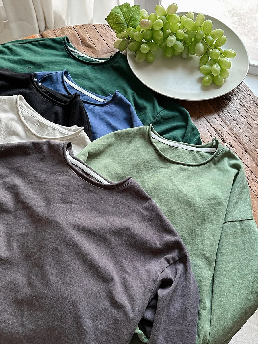 M&T Wear - Korean Children's Clothes 2025 Kids Boys 0-3Y Baby Girls Cotton Solid Color Long Sleeve Loose Fit Base Layer Soft Wear Top