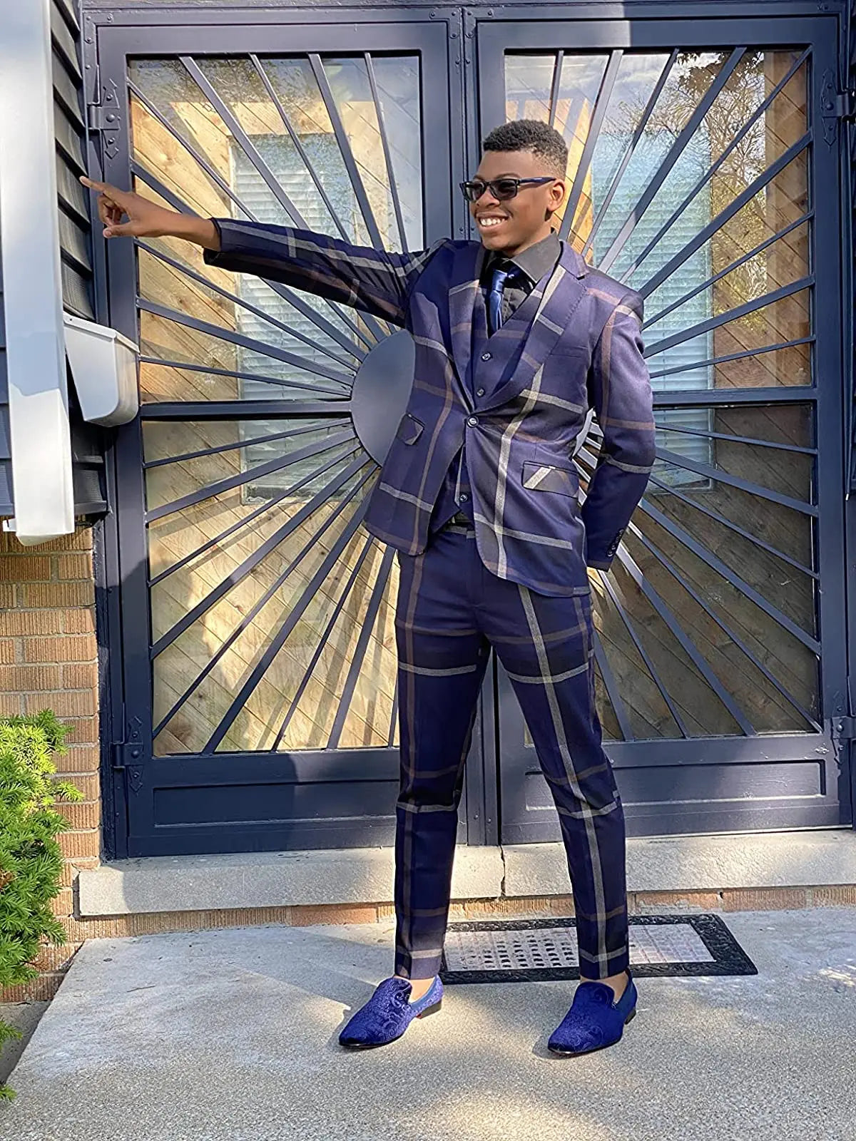 Make an unforgettable impression at weddings, formal events, or parties with this timeless 3-piece check plaid suit. Tailored with precision, it features a single-breasted one-button jacket, a matching vest, and flat-front trousers—designed for comfort, style, and confidence in every setting.
