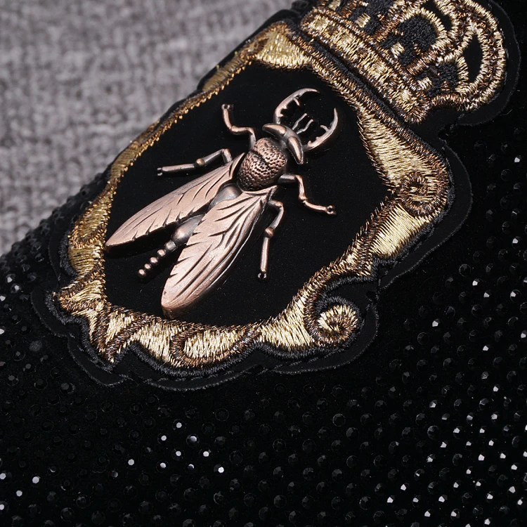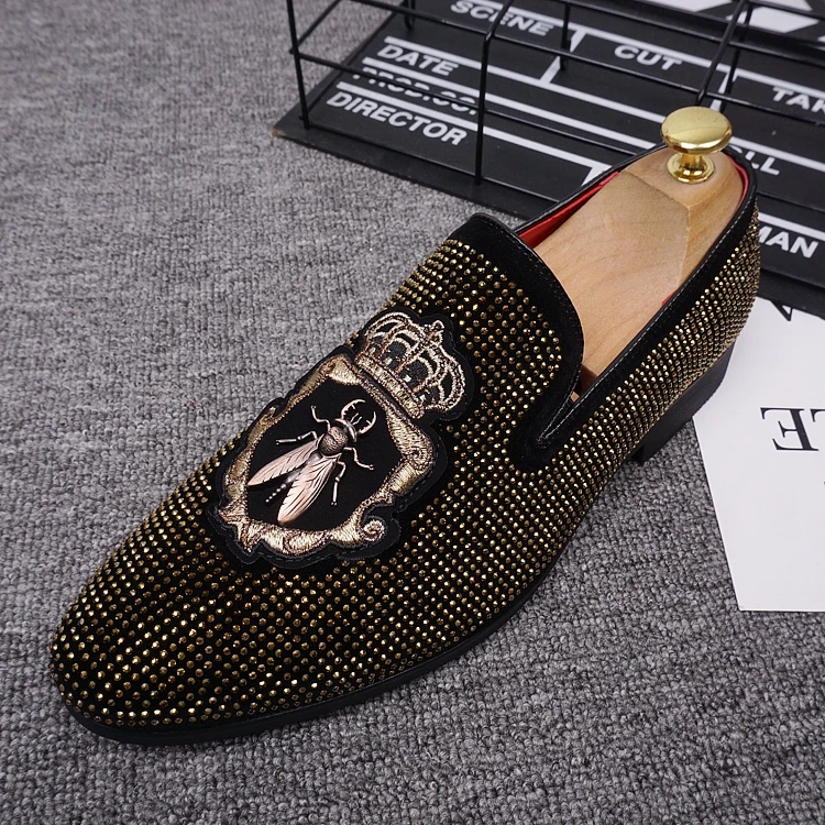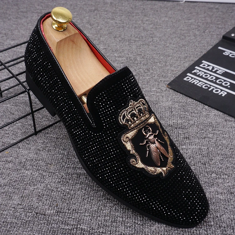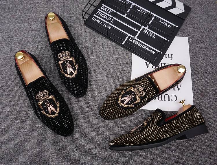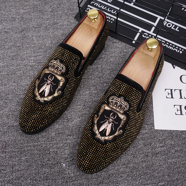 M&T Wear - New Shoes for Men Leather Casual Shoes Luxury Pointed Toe Party Dress Shoes Street Trend Slip-on Rhinestone Crown Loafers