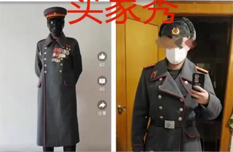 Soviet Union Officer's Coat Long Men Thick Grey Winter Overcoat Vintage Military Head