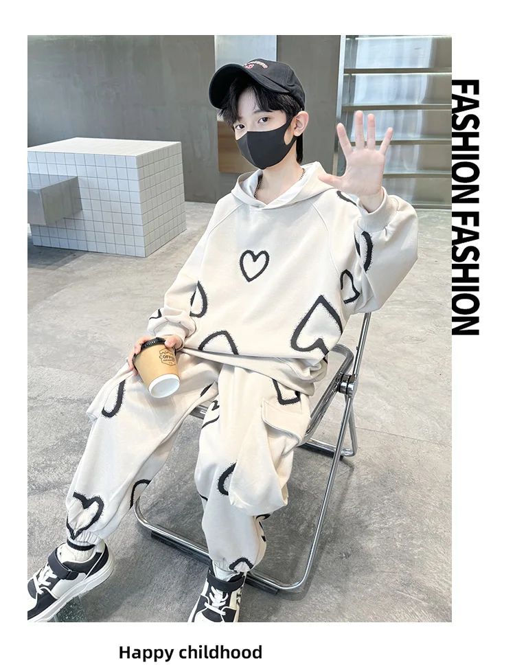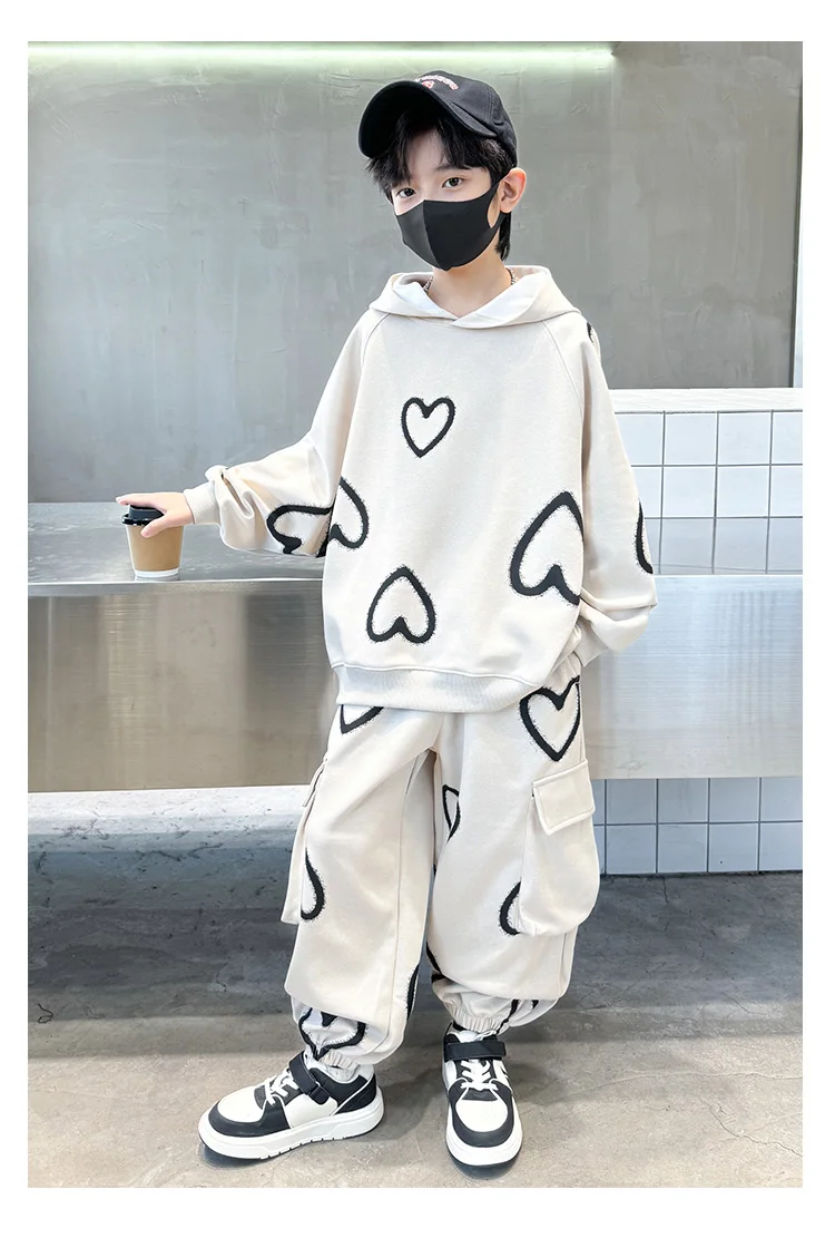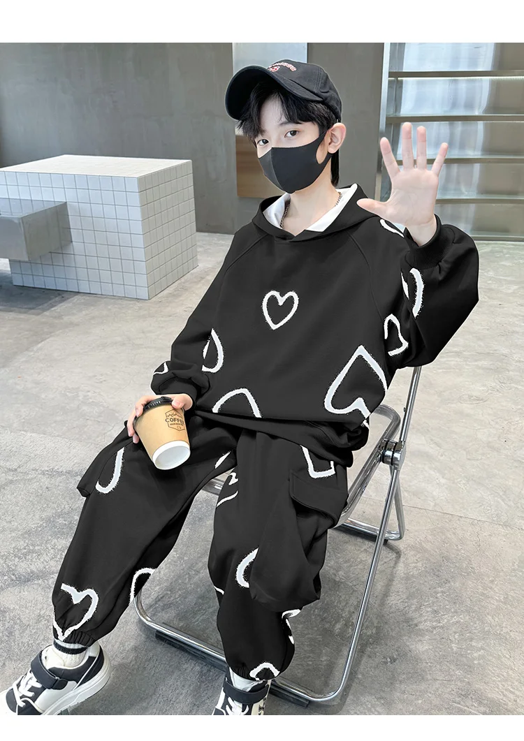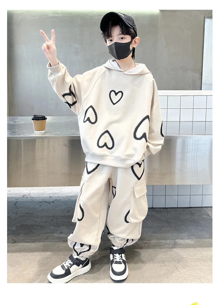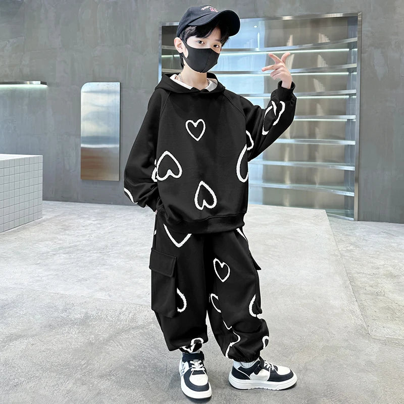 M&T Wear - Tracksuits for Kids 2025 Autumn Heart Print Casual School Boys Girls Hoodies+Pants Suits 5-14Years Teen Children Clothes Outfits
