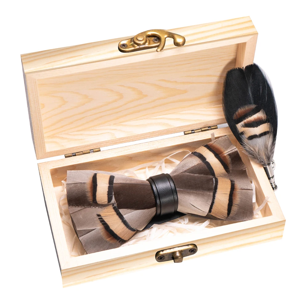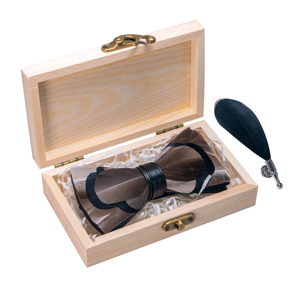 Wedding Bow Tie for Men Classic Burgundy Pre-tied Bowtie brooch wooden box Set for Party Show Butterfly Knot Groom best man Gift
