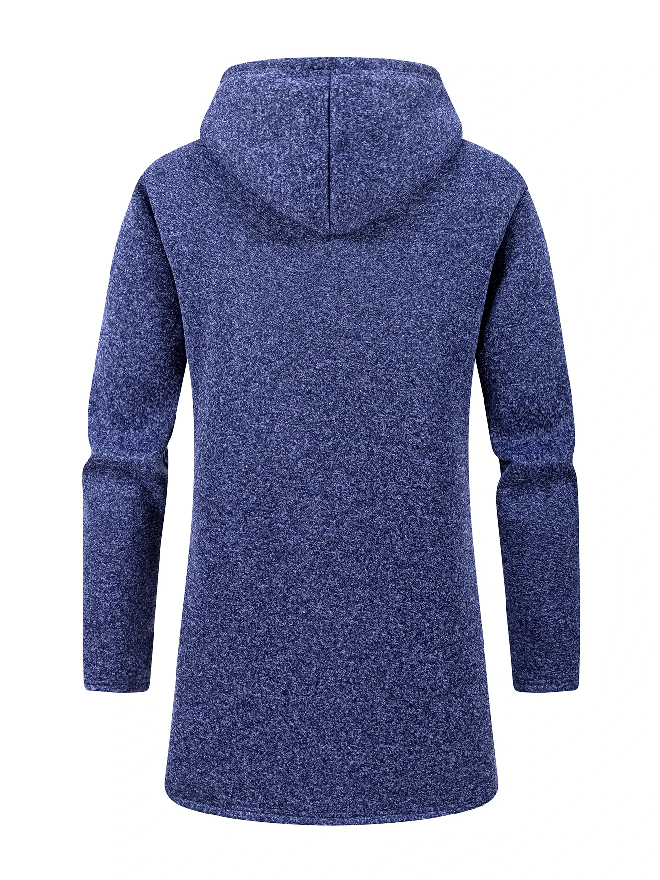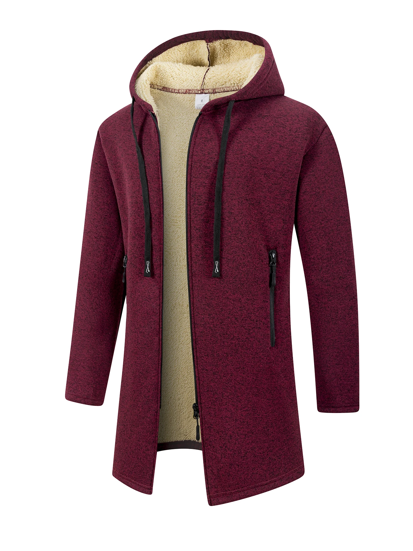 Crafted from high-quality fleece-lined knit fabric, this men’s long cardigan hoodie combines warmth and comfort in one. The full-length zipper allows for easy wear, while the hood delivers extra protection against chilly winds.