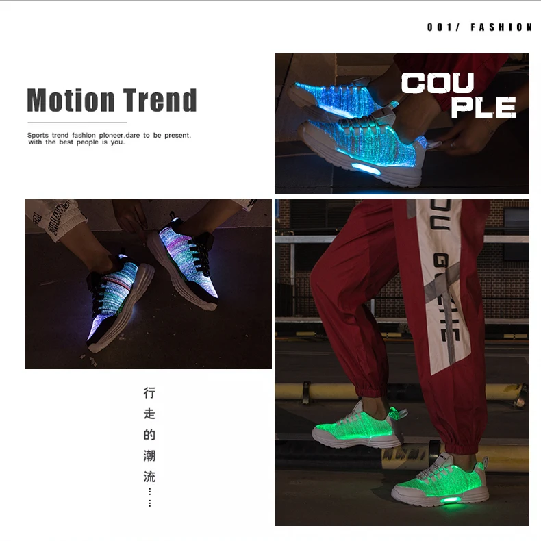 M&T Wear - Women LED Shoes Light Up Sneakers USB Recharging Fiber OPTIC Cloth Elastic Sole Glowing Luminous Flashing Luxury Party Shoes