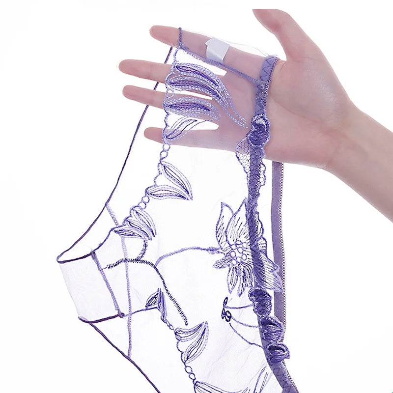 M&T Wear - Plus Size Sexy Perspective Flower Embroidery Low Waist Panties